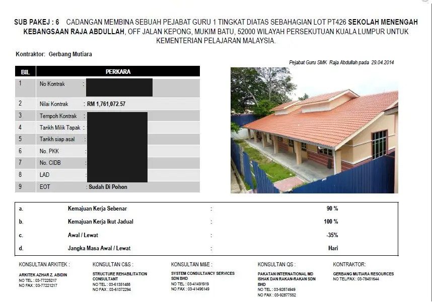 Project Management, Liaising with Malaysian Board of Education and contractor.