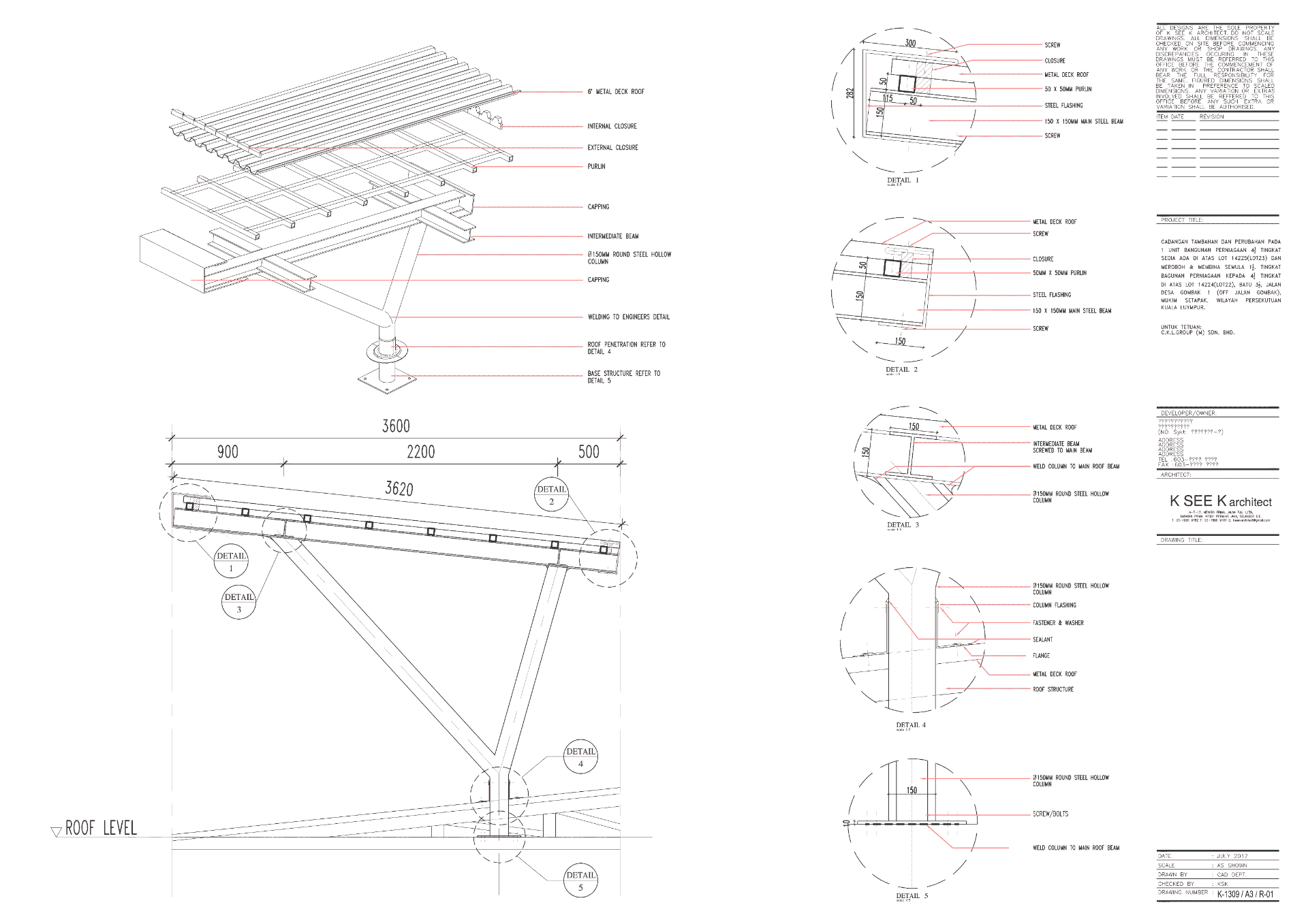 Design a conversion of a car workshop into a functional office building. Prepared the majority of technical drawings and schedules, including basic documentation for custom roofing solutions and louver features.